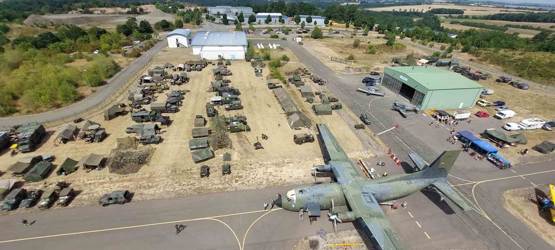Zweibrücken bot sich auch aus einem guten Grund als passender Ort an: Weil es hier ja eine große Attraktion für Freunde von Militärtechnik gibt. Seit vergangenem Dezember steht schließlich ein originales Bundeswehr-Transportflugzeug auf dem Flugplatz, die legendäre Transall. Besitzer Dominik Weil hatte sie bei der Vebeg gekauft, einer Firma, die ausrangiertes Bundeseigentum verkauft. Der Kaufpreis stehe drauf, sagt der glückliche Besitzer – 50 79 als Kennzeichnung ist dort zu lesen. Man müsse nur in der Mitte eine Null einfügen. Aus dem Flugzeug soll eine Ferienwohnung entstehen (wir berichteten). Weil freute sich, dass er bei der Triwo Aiport Services GmbH und deren Geschäftsführer Benjamin Grünagel auf offene Ohren gestoßen war für seinen Plan. Die Transall kann in Zweibrücken stehenbleiben und dann also zukünftig als Ferienunterkunft dienen. Jetzt war sie natürlich erstmal Hauptattraktion des Air Base Camps. Selbst ins Cockpit durften interessierte Besucher einsteigen.